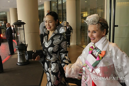 (로스앤젤레스=연합뉴스) 김종우 특파원 = 미국 최대 영화축제인 아카데미상 올해 시상식 행사에 전통 한복(韓服)을 입은 미국 여배우가 등장해 눈길을 끌었다.
