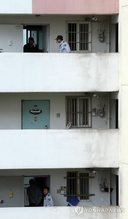 경찰은 살인 등 혐의로 이 아파트에 사는 30대 남성을 붙잡아 조사하고 있다.