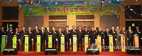 | △ "4% 경제 만들자"…충북도, 비전 선포식 (청주=연합뉴스) 심규석 기자 = 이시종 충북지사는 지난 12일 라마다플라자 청주호텔에서 '충북경제 4% 실현 비전 선포식'을 열고 '2020 발전 전략'을 발표했다. 2015.2.24 <<충북도 제공>> ks@yna.co.kr |