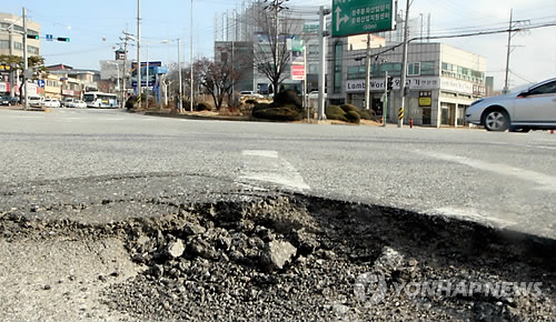 이곳에서 불과 500m 떨어진 도로 역시 금방이라도 팰 것처럼 곳곳이 갈라져 있었다. 겨울철이 지나고 해빙기가 되면서 도로 곳곳에 발생한 '포트홀'로 운전자들이 애를 먹고 있다.