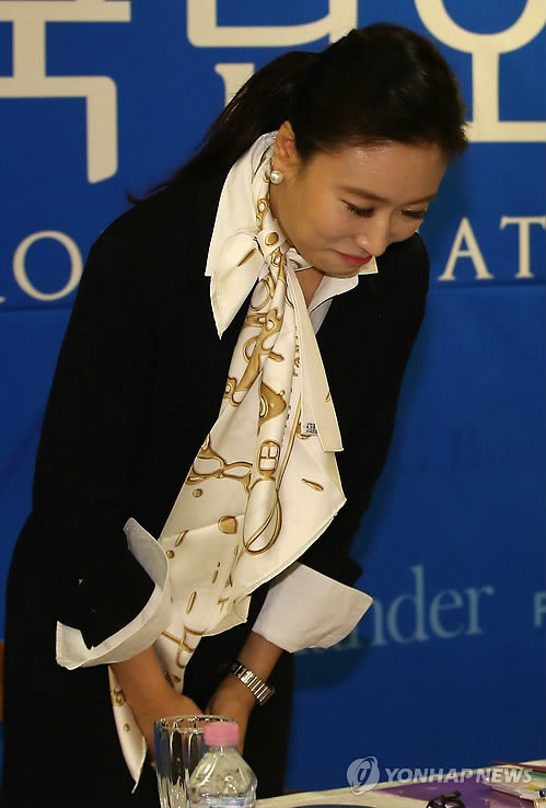 | △ 자격 논란에 휩싸였던 한예진 국립오페라단 신임 예술감독 겸 단장이 24일 돌연 사의를 표명했다. 사진은 예술감독이 지난 3일 서울 세종문화회관에서 열린 2015 사업 발표 기자간담회에서 인사 하는 모습. (연합뉴스 자료사진) |