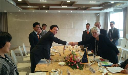 이날 오전 프레지던트 호텔에서 열린 유럽연합(EU)과의 양자회의에서 긍정적인 반응을 얻었다는 것이다.