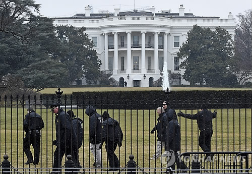 | △ 지난 1월 26일 상업용 소형 드론(무인기)이 백악관 건물 남동쪽을 들이받고 추락했을 당시 비밀경호국(SS) 요원들이 백악관 안을 수색하고 있는 모습. (AP=연합뉴스 자료사진) |