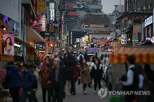 | △ 한국의 젊은층이 다른 나라 동년배보다 미래를 더 비관적으로 보고 있다고 미국 퓨리서치센터가 25일(현지시간) 분석했다. 홍대 거리를 걷고 있는 청년들 (연합뉴스 자료사진) |