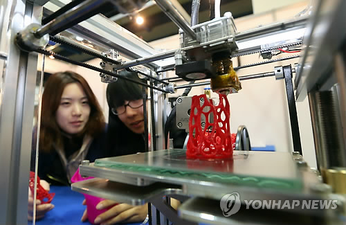 | △ 정교하게 발전하는 3D프린터 (서울=연합뉴스) 임헌정 기자 = 3일 서울 삼성동 코엑스에서 개막한 '2014 국제신소재 및 응용기술전'에서 한 업체 관계자들이 3D 프린터 제작 시연을 하고 있다. 2014.12.3 kane@yna.co.kr |
