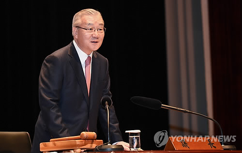 | △ 취임사 하는 김인호 무역협회장 (서울=연합뉴스) 26일 서울 강남구 삼성동 코엑스에서 열린 무역협회 정기총회에서 김인호 한국무역협회 신임 회장이 취임사를 하고 있다. 2015.2.26 << 무역협회 제공 >> photo@yna.co.kr |