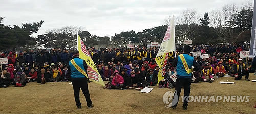 | △ 월성1호기 동경주 대책위원회 소속 주민 500여명이 지난 1월 29일 경주 월성원자력본부 앞에서 월성1호기 계속운전 철회와 영구폐쇄를 촉구하는 시위를 벌이는 모습. <<연합뉴스DB>> |