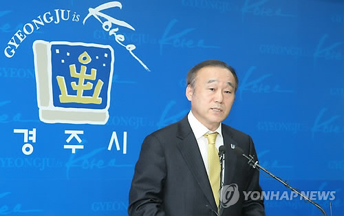 | △ 경주시장 "월성원전 1호기 재가동 결정 수용" (경주=연합뉴스) 이승형 기자 = 최양식 경주시장이 27일 시청 브리핑룸에서 기자회견을 열고 원자력안전위원회의 월성원전 1호기 재가동 결정에 대해 "원안위 결정을 받아들인다"고 밝히고 있다. 2015.2.27 haru@yna.co.kr |