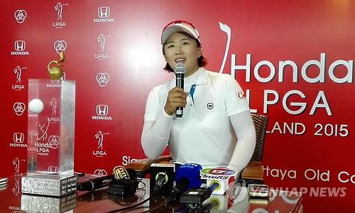 | △ 소감 밝히는 양희영 (촌부리<태국>=연합뉴스) 김동찬 기자 = 1일(현지시간) 태국 촌부리에서 열린 미국여자프로골프(LPGA) 투어 혼다 타일랜드에서 우승을 차지한 양희영이 우승 트로피를 앞에 두고 기자회견을 하고 있다. |