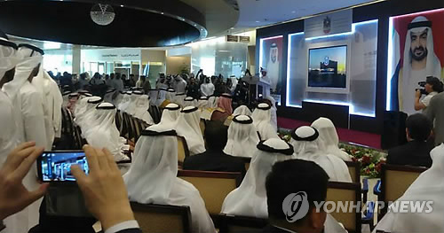 | △ 우리나라와 중동 간 보건의료 분야 협력이 1일부터 시작된 박근혜 대통령의 중동 4개국(쿠웨이트, 사우디아라비아, UAE, 카타르) 순방을 계기로 속도를 낼 전망이다. 해당 사진은 서울대학교 병원이 위탁운영권을 따낸 아랍에미리트(UAE) 왕립 쉐이크 칼리파 전문병원이 지난 2월 18일 라스 알 카이마에 공식적으로 문을 열고 개원 기념식을 하는 모습. UAE 왕립병원 로비에서 진행된 이날 기념식에는 문형표 보건복지부 장관, 만수르 빈 자예드 알 나얀 UAE 부총리 겸 대통령실 장관, 라스 알 카이마 통치자인 쉐이크 사우드, 오병희 서울대병원장, 성명훈 UAE 왕립병원장등이 참석했다. << 서울대병원제공 >> photo@yna.co.kr |