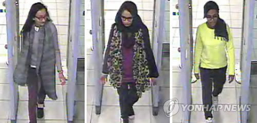 지난달 17일 항공편으로 런던에서 이스탄불에 도착한 샤미마 베이검(16), 카디자 술타나(15), 아미라 아바스(15)가 시리아에 접경한 터키의 샨리우르파로 가는 버스를 타기 위해 이스탄불 버스터미널에서 대기하는 장면이 폐쇄회로TV(CCTV)에 찍혔다고 AFP 통신이 보도했다.