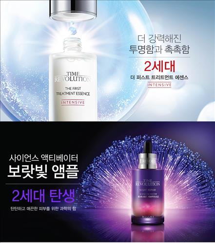 (서울=연합뉴스) 김희선 기자 = 에이블씨엔씨의 화장품 브랜드 미샤는 '더 퍼스트 트리트먼트 에센스'와 '나이트 리페어 사이언스 액티베이터 앰플'에 새로운 공법과 성분을 도입한 '2세대 제품'을 출시한다고 2일 밝혔다.