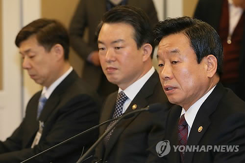 | △ 총기사고 재발방지 대책보고하는 국민안전처 (서울=연합뉴스) 진성철 기자 = 박인용 국민안전처 장관(오른쪽)이 2일 국회 귀빈식당에서 열린 총기사고 재발방지 및 안전대책 당정협의에서 보고하고 있다. 왼쪽은 강신명 경찰청장. |