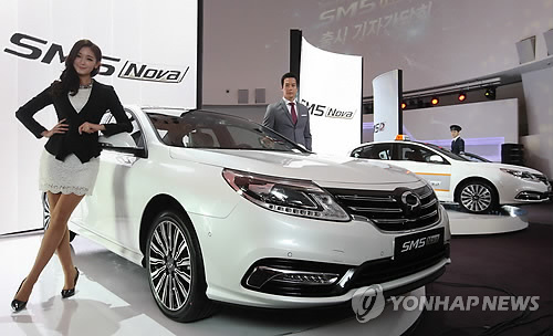 | △ 르노삼성은 지난 2월 영업일과 조업일수가 줄었는데도 작년 동기보다 2배 이상(102.5%) 늘어난 수치를 보이며, 1월(150.6%)에 이어 두 달 연속 '더블 성장' 행진을 이어갔다. 지난 1월 열린 르노삼성자동차 신차 발표회에서 모델들이 디자인이 새롭게 바뀐 SM5 노바를 선보이고 있다. (연합뉴스 자료사진) |