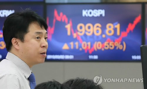 코스피는 전 거래일보다 11.01포인트(0.55%) 오른 1,996.81로 장을 마감했다.