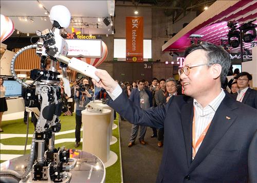 장 사장은 이번 MWC 참가가 SK텔레콤 수장으로서 글로벌 무대 데뷔인 셈이다. 이번 MWC 참석을 계기로 세계이동통신사업자협의회(GSMA) 이사회 신임 멤버로 인사도 했다. 갤럭시S6 개발의 주역인 삼성전자 신종균 사장과도 만나 양사간 협력방안도 집중 논의했다.