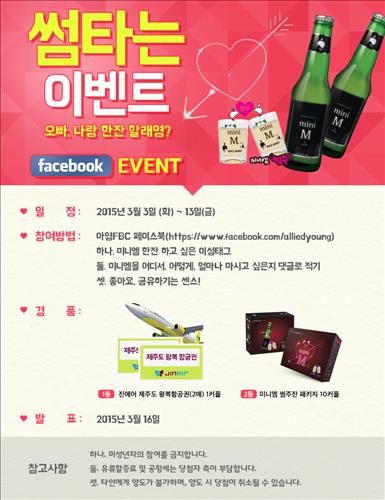 아영FBC는 13일까지 공식 페이스북(www.facebook.com/alliedyoung)에서 응모하는 고객을 대상으로 추첨을 실시해 제주도 왕복 항공권(2매)을 증정하는 '미니엠 화이트데이 이벤트'도 실시한다.