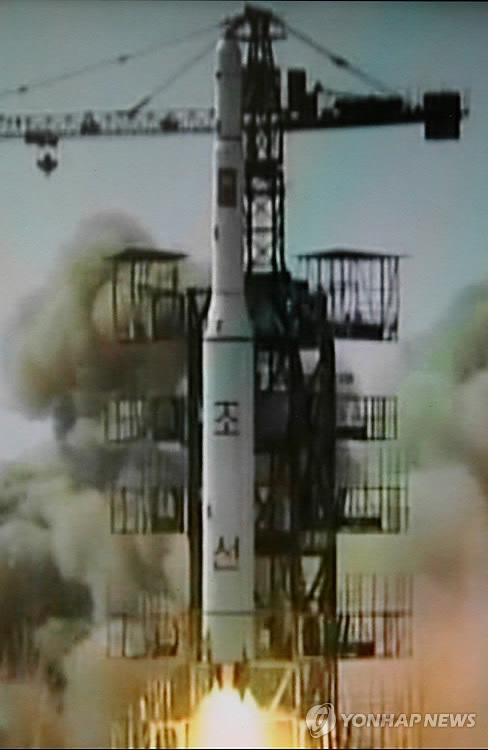 | △ 지난 2009년의 광명성 2호 발사모습 (서울=연합뉴스) 2012.12.2 << 연합뉴스DB >> |