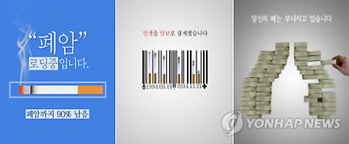 | △ 담뱃갑 경고그림 의무화를 담은 국민건강증진법 개정안은 지난달 24일과 26일 진통 끝에 각각 보건복지위원회 법안소위와 전체회의를 통과했지만 3일 열린 법제사법위원회에서 "좀 더 논의할 필요가 있다"는 이유로 보류됐다. 2014년 담뱃갑 경고그림 공모전 시상식 청소년·대학생·일반인 부문별 대상 수상작들. (보건복지부 제공) |