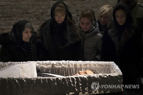 | △ 넴초프여 암살없는 나라로… (AP=연합뉴스) 총격 피살된 러시아 야권 지도자 보리스 넴초프의 장례식이 열리고 있는 3일(현지시간) 모스크바의 사하로프 센터에서, 가족·친지들이 관에 안치된 넴초프의 시신을 보며 마지막 인사를 하고 있다. |