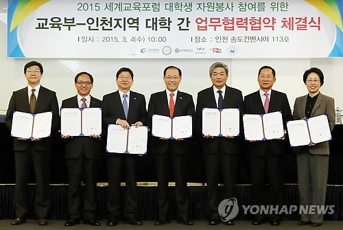 (세종=연합뉴스) 노재현 기자 = 교육부는 4일 오전 10시 인천시 송도 컨벤시아에서 인천 지역 대학들과 2015 세계교육포럼의 성공적 개최를 위한 업무협약을 체결한다.