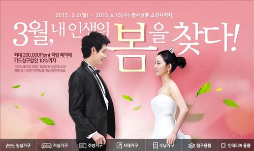 (서울=연합뉴스) 김아람 기자 = 인터파크는 결혼 성수기를 맞아 다음 달 15일까지 혼수용품 할인 판매하는 '3월, 내 인생의 봄을 찾다' 행사를 연다고 4일 밝혔다.