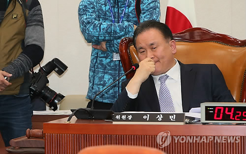 | △ 고심하는 이상민 법사위원장 (서울=연합뉴스) 진성철 기자 = 국회 법제사법위원회 이상민 위원장이 3일 국회에서 열린 전체회의에서 '김영란법, 영유아보육법' 처리가 난항을 겪자 고심하고 있다. 2015.3.3 zjin@yna.co.kr |