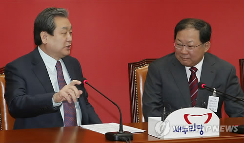 (서울=연합뉴스) 홍정규 기자 = 새누리당 김무성 대표는 4일 박병원 한국경영자총연합회 회장에게 "노동시장 이중구조와 양극화 문제를 개혁하는 데 앞장서달라"고 당부했다.