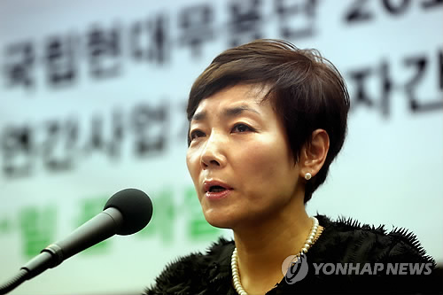 | △ 인사말 하는 안애순 예술감독 (서울=연합뉴스) 김수진 기자 = 안애순 예술감독이 4일 오전 서울 중구 프레스센터에서 열린 국립현대무용단 2015년 연간사업계획 '밑 끝 바깥' 기자간담회에서 인사말을 하고 있다. |