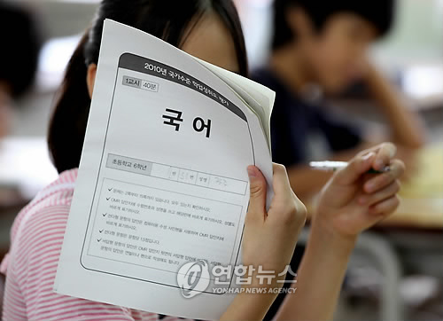 | △ 지난 2010년 국가수준 학업성취도평가(일제고사)가 치러진 서울 시내 한 초등학교 교실에서 학생이 시험문제를 확인하고 있다.. (연합뉴스 자료사진) |