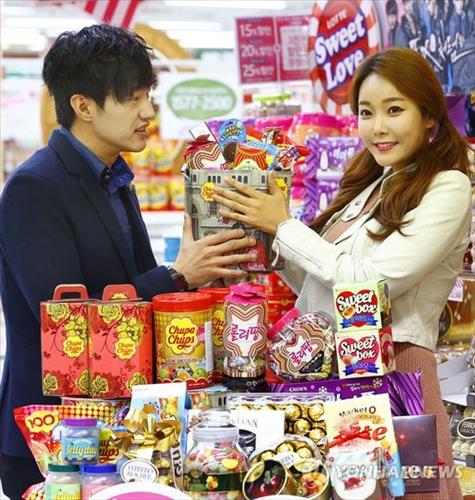 | △ 남성이 여성에게 사랑을 고백하는 '화이트데이(3월 14일)'를 앞두고 호텔·외식·여행 관련 상품과 스파·미용 등 여성들이 좋아하는 이용권이 잘 팔리고 있다. 특히 올해 화이트데이가 주말인 토요일이라 여행 상품을 찾는 커플들도 많다. 사진은 한 대형마트 화이트데이 기획전 홍보를 위해 포즈를 취한 남여 모델. |