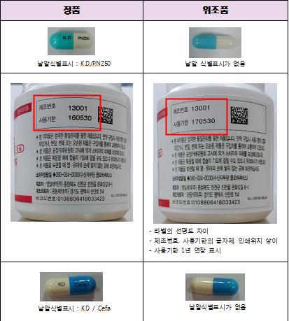 식약처는 "해당 위조품에 대해 판매중지와 압수 조치를 취했다"며 "위조 의약품 제조와 판매는 국민 건강을 크게 훼손할 수 있으므로 지속적으로 관리·감독할 것"이라고 밝혔다.