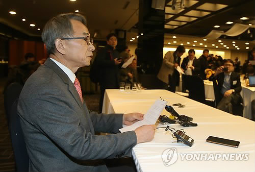 | △ 입장 발표하는 김영만 민화협 홍보위원장 (서울=연합뉴스) 김주성 기자 = 마크 리퍼트 주한 미대사가 5일 오전 서울 세종문화회관에서 열린 민족화해협력범국민협의회 주최 초청 강연에 참석했다가 괴한의 습격을 받은 가운데, 김영만 민화협 홍보위원장이 입장을 발표하고 있다. |