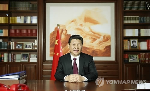 | △ 시진핑(習近平) 중국 국가주석이 지난해 12월 31일 집무실에서 신년사를 전하고 있다. |