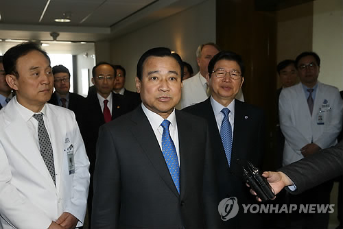 | △ 이총리, 리퍼트 병문안…"양국관계 결속 계기돼야" (서울=연합뉴스) 서명곤 기자 = 이완구 국무총리가 6일 오전 서울 서대문구 세브란스병원에서 마크 리퍼트 주한 미국 대사를 병문안한 뒤 취재진의 질문에 답하고 있다. |