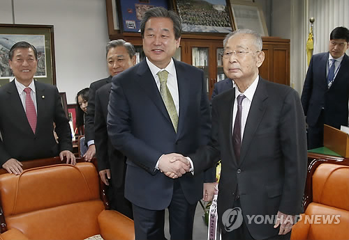 (서울=연합뉴스) 류미나 기자 = 새누리당 김무성 대표는 6일 백선엽(95) 예비역 대장을 예방했다.