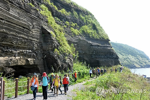 | △ 수월봉 트레일 걷는 탐방객들 <<연합뉴스DB>> |