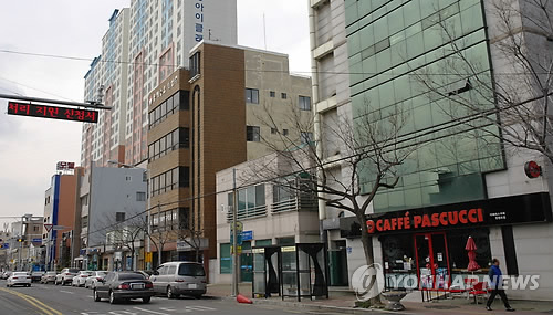 | △ 변신 중인 울산 장생포 상권 (울산=연합뉴스) 허광무 기자 = 고래잡이 금지 이후 침체했던 울산 장생포가 고래 관광지로 부상하면서 상권의 모습도 바뀌고 있다. 커피전문점과 주상복합아파트가 들어선 장생포 일원. 2015.3.8 hkm@yna.co.kr |