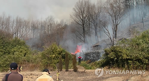 전날 오후 1시께는 경기도 양평군 용문산 밑자락과 양동면 야산에서 불이나 총 0.3㏊가량을 태웠다. 산림당국은 주민이 논두렁을 태우거나 쓰레기 소각 도중 옮아붙은 것으로 추정하고 있다.