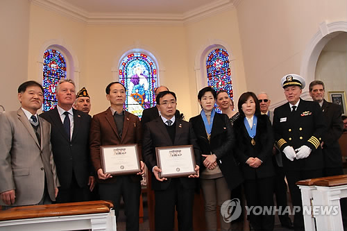 '포 채플린스 메모리얼 파운데이션'은 8일(현지시간) 과거 해군 기지였던 미국필라델피아 네이비야드에서 '골드메달 시상식'을 열고 다른 사람의 목숨을 구하려다 끝내 주검으로 발견된 이 두 사람에게 최고상을 수여했다.