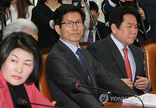 | △ 혁신위 보고 앞둔 김문수 (서울=연합뉴스) 진성철 기자 = 새누리당 김문수 보수혁신위원장(가운데)이 9일 국회에서 열린 최고위원회의에서 혁신위안 보고를 준비하고 있다. |