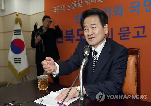 | △ 정동영 전 의원이 지난 3일 오후 전북도의회 에서 국민모임 신당 설명회를 열어 진보정당 건설의 필요성을 강조하고 있다. |