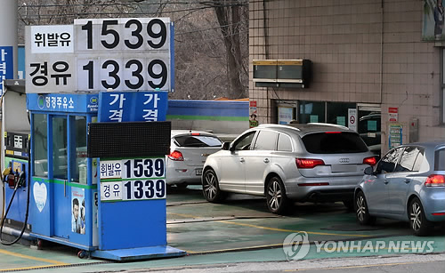 전국 1만2천여개 주유소의 휘발유 평균값은 정유사 공급가격 인상에 따라 2월5일 ℓ당 1천409원으로 저점을 찍고, 다음날부터 매일 상승해 지난 8일 1천500원대로 올라섰다.
