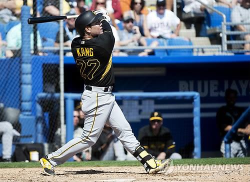 (댈러스=연합뉴스) 장현구 특파원 = 강정호(28·피츠버그 파이리츠)가 미국프로야구 시범경기에서 처음으로 4번 타자로 나섰으나 안타를 치지 못했다.