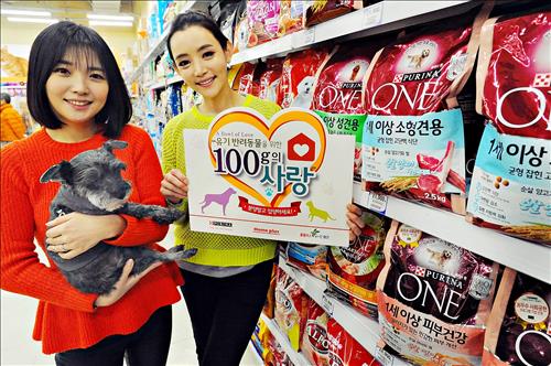 내달 1일까지 홈플러스에서 퓨리나 원, 알포, 프리스키 등 반려동물 건사료 브랜드 상품을 30% 할인 판매한다. 상품 1포가 팔릴 때마다 사료 100g을 적립해 유기 반려동물 보호소에 기부한다.