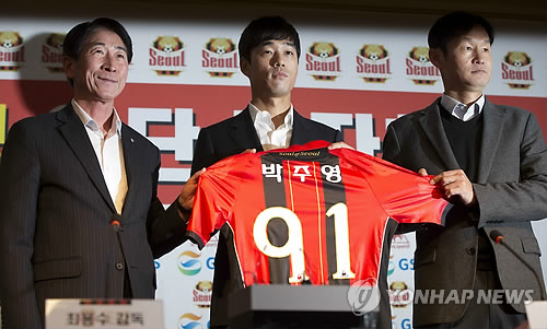박주영은 10일 서울과 3년간 계약을 맺고 2008년 이후 7년 만에 국내 무대로 복귀했다.