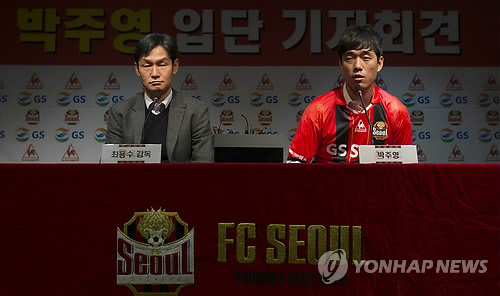 최 감독은 11일 서울월드컵경기장에서 열린 박주영 입단식 및 기자회견에 참석해 "박주영 선수가 서울에 복귀하기까지 쉽지 않은 결정을 한 것을 환영한다"며 "빨리 팀에 녹아들어 갖춘 능력을 경기장에서 보여주기를 바란다"고 말했다.