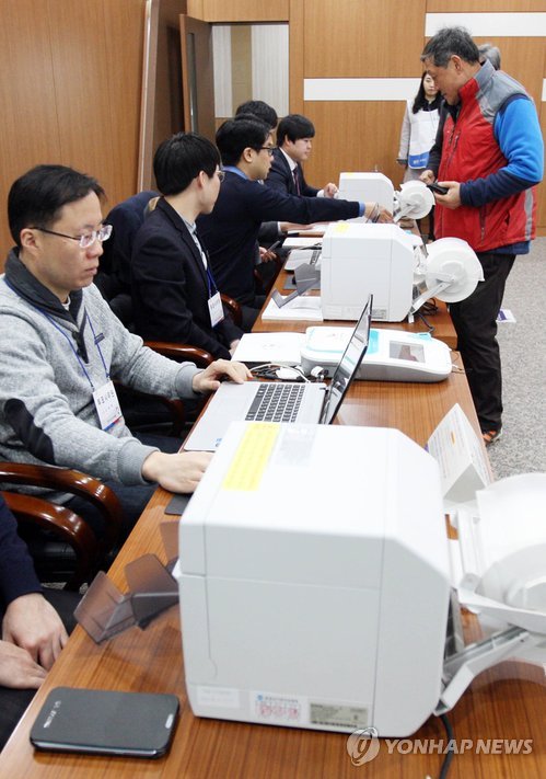 | △ '전국동시조합장 선거' 투표 (청주=연합뉴스) 김형우 기자 = 제1회 전국동시조합장 선거일인 11일 오전 청주시 청원구 우암동 청주축산농협 투표소에서 한 조합원이 투표지를 받고 있다. 2015.3.11 vodcast@yna.co.kr |