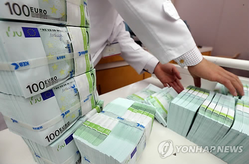 (런던=연합뉴스) 황정우 특파원 = 유로화 가치가 하락세를 이어가며 12년 만의 최저치로 떨어졌다.