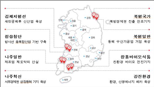 지정 지역은 전북의 김제지평서 일반산업단지, 정읍 첨단과학산업단지, 전남의 나주혁신 일반산업단지, 장흥바이오식품 일반산업단지, 나주 일반산업단지, 강진환경 일반산업단지, 강원의 북평 국가산업단지, 북평 일반산업단지다.